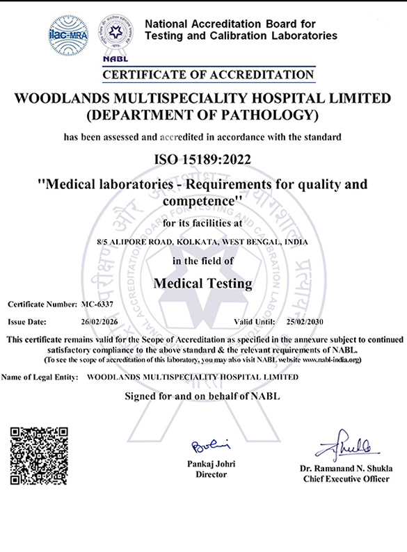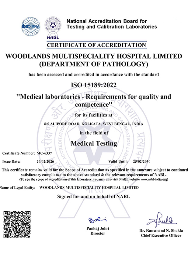 Woodlands Hospital is proud to be the first hospital in Bengal to receive NABH accreditation for the Emergency Department. With three prestigious NABH accreditations — for the Hospital, the Emergency Department, and the Nursing Department — we continue to set benchmarks in quality healthcare. Our commitment to excellence ensures the highest standards of patient care, safety, and medical expertise.